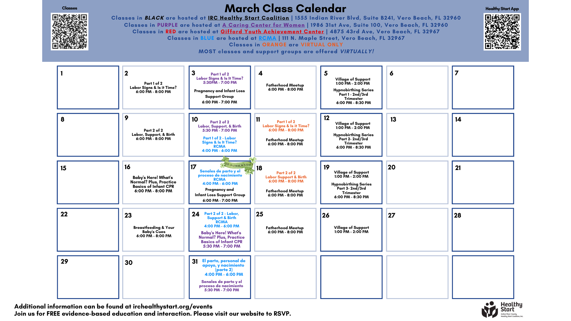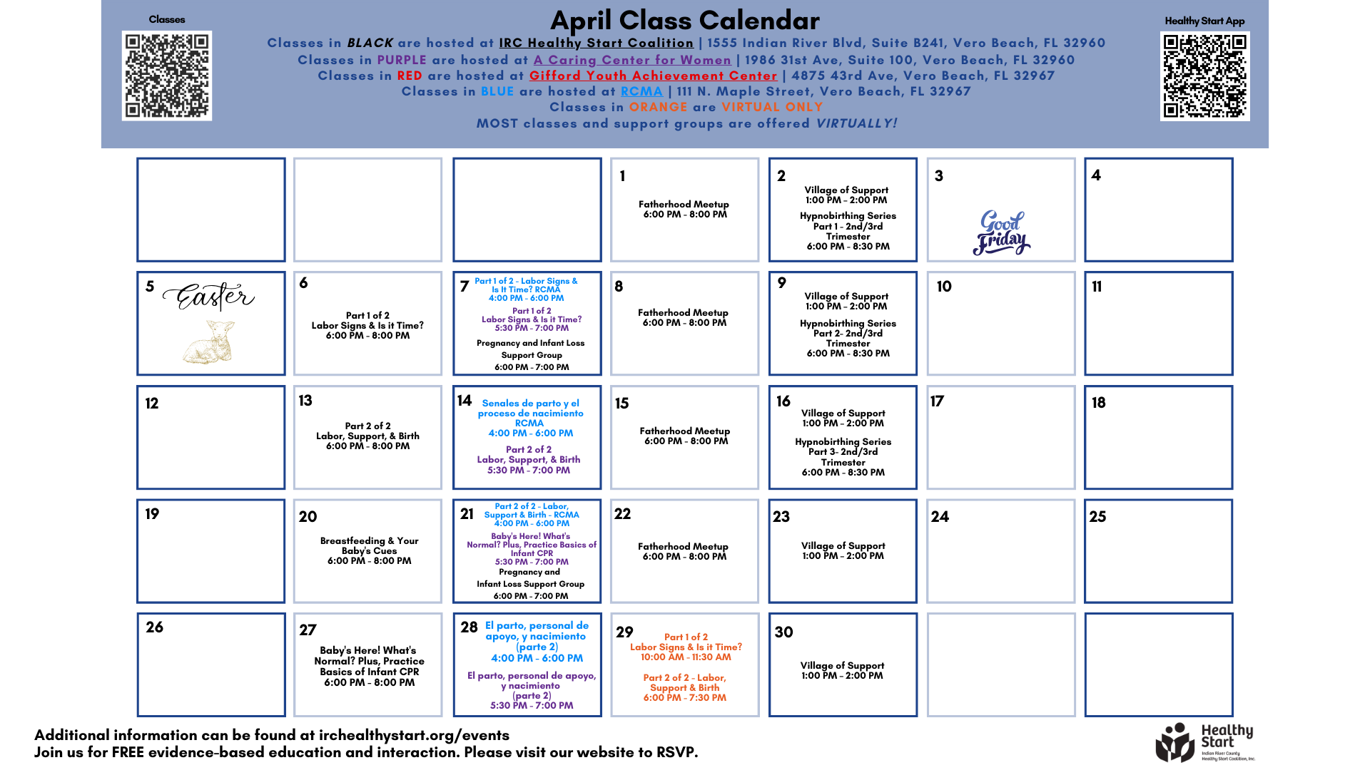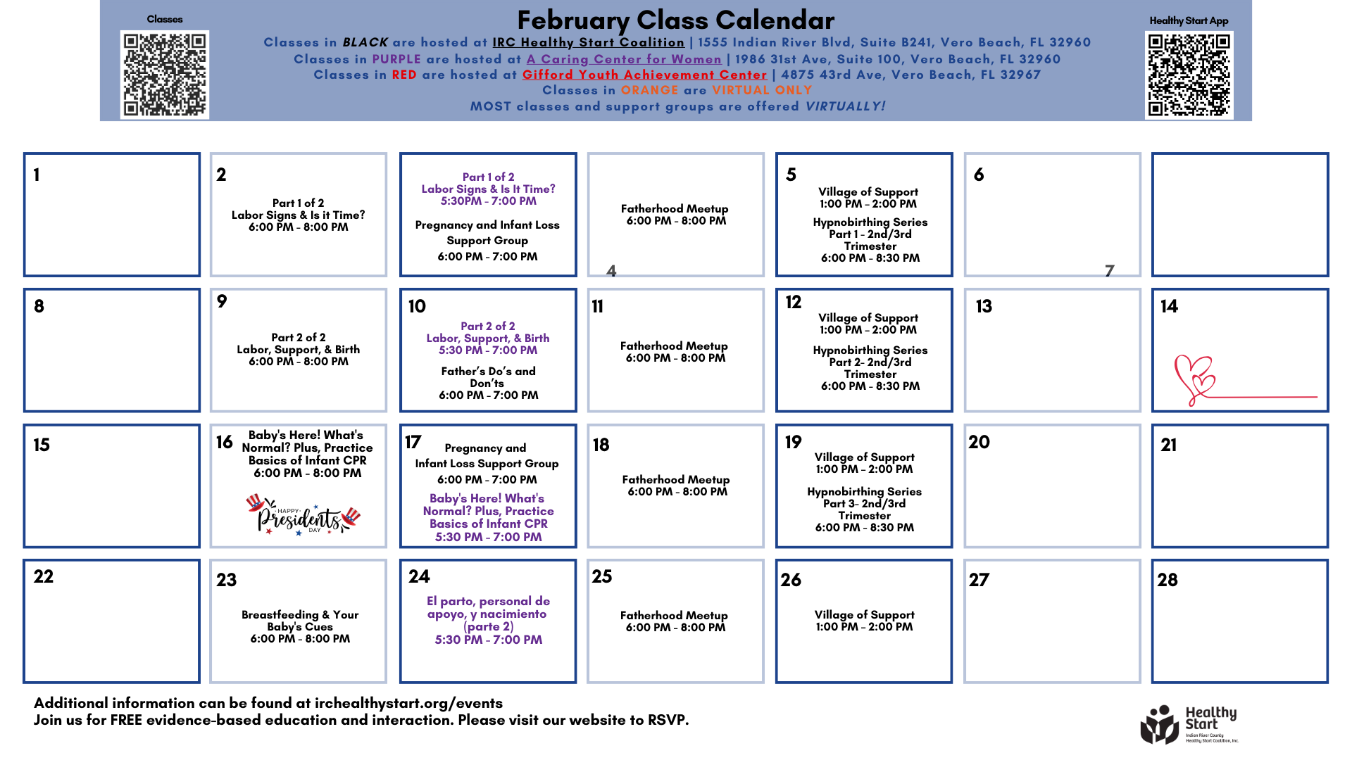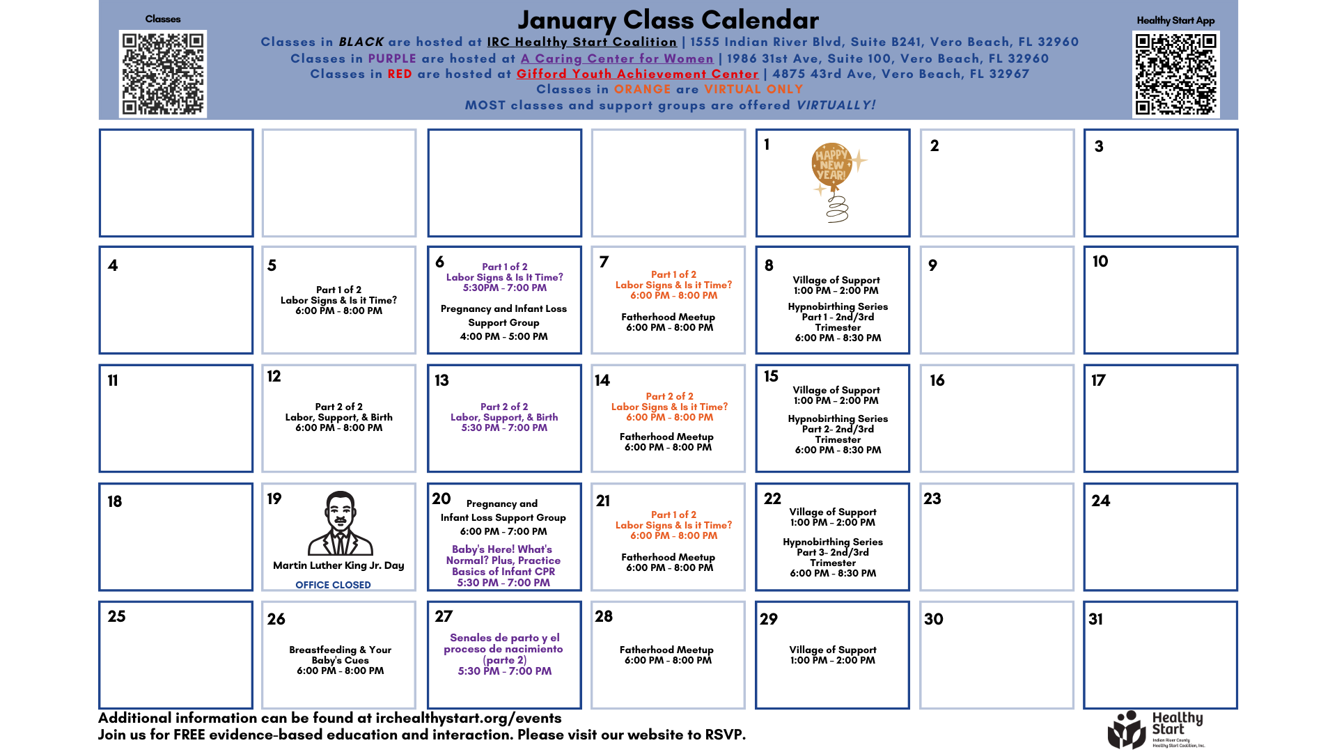 Explore our class calendar below! All classes are free to Indian River County Residents.