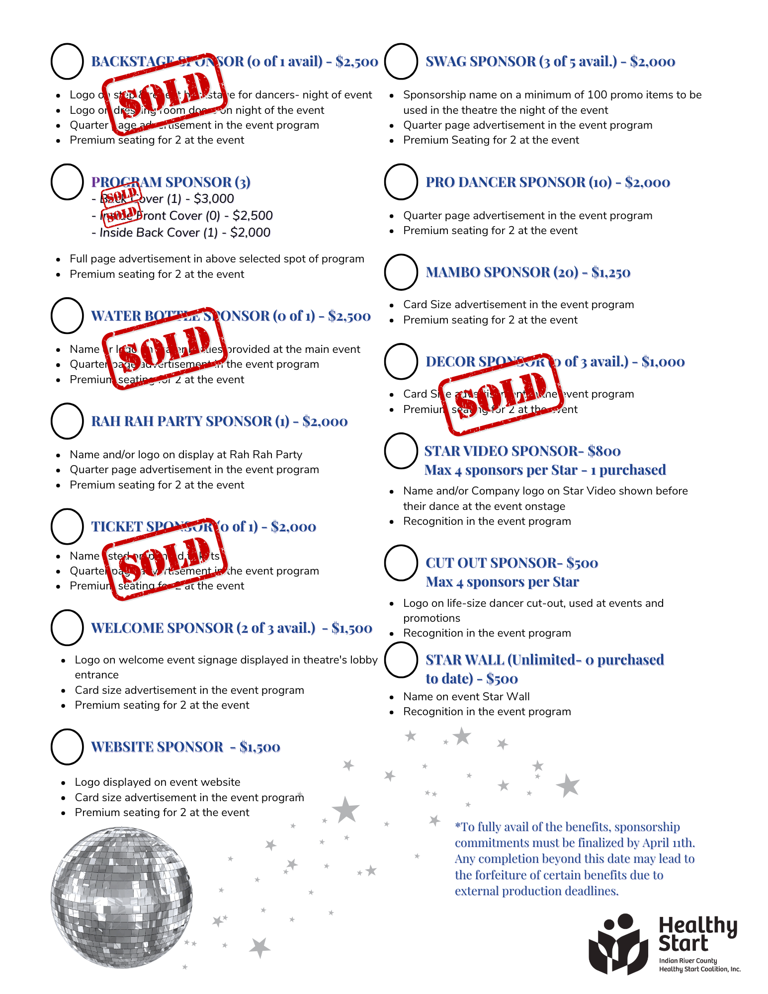 Join us in supporting IRC Healthy Start and your Star Dancer by choosing one of our exciting sponsorship opportunities listed below. Every dollar raised counts as a vote for your star and helps advance our mission to strengthen a local system of care that promotes the health and well-being of moms, dads, babies, and families in Indian River County.